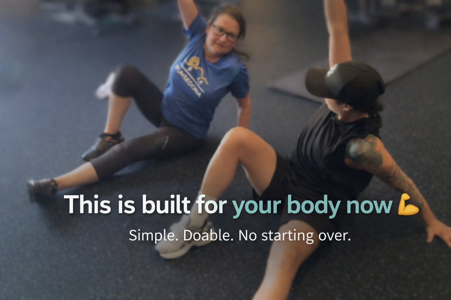 This is not a template, your plan is built around your body, your schedule, and adjusted as you go. You’ll have real coaching, structure, and accountability every week + support from women in the same stage of life. With simple check-ins and guidance, you don’t have to figure it out alone and you don’t fall off when life gets busy.